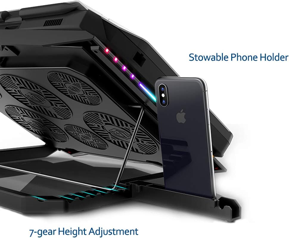 MeFee RGB Laptop Cooling Pad for 15. 6-21 Inch Professional Gaming Laptop Cooler with 6 Quiet Fans and Button Control, Pure Metal Panel Portable Cooler