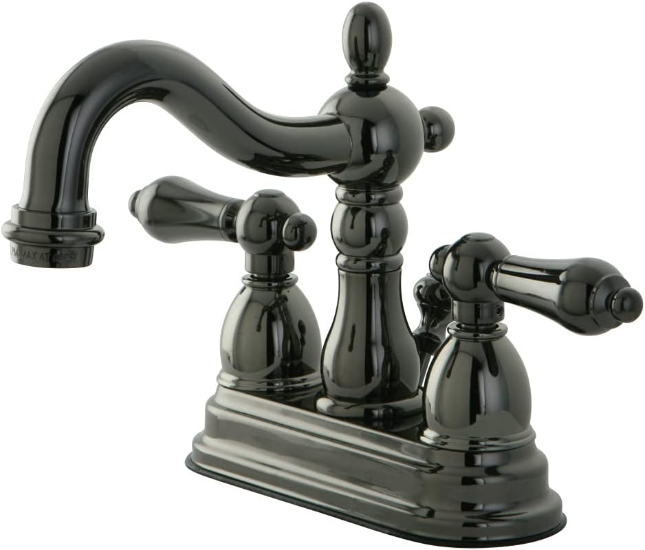 Customer reviews Kingston Brass NB1600AL Water Onyx 4 inch Centerset Lavatory Faucet with Brass Pop-up Drain, Black Stainless Steel